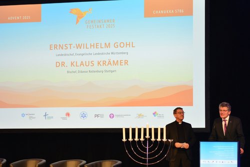Die beiden Israelitischen Religionsgemeinschaften, die vier großen christlichen Kirchen und die Stadt Pforzheim haben am 20. Dezember 2025 nach Schabbatende zu einem gemeinsamen Festakt eingeladen. Die Feier stand nach dem antisemitischen Terrorangriff in Sydney auch im Zeichen des Gedenkens an die Opfer.