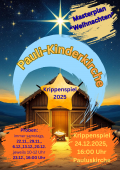 Die Proben für das Krippenspiel in der Paulusgemeinde beginnen. Termine sind: immer samstags 22. und 29. 11., 6., 13. und 20. 12. von 10-12:00 Uhr. und Die., 23.12., 16:00 Uhr. Lust mitzuspielen? Dann komm einfach vorbei. Wir freuen uns auf dich!